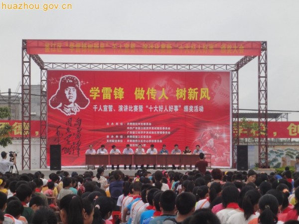 为深入开展党的群众路线教育实践活动,在全社会大力弘扬雷锋精神,践行社会主义核心价值观,倡导志愿行动,不断增强广大青少年的社会责任感和使命感,共青团鉴江区委积极响应共青团化州市委的号召,在鉴江区党委、管委,巿文明办和鉴江区中心学校的大力支持下,从即日起在该区中小学联合开展“学雷锋树新风"志愿系列活动。这次千人宣誓活动拉开了系列活动的序幕。据了解,为了将"学雷锋树新风”活动深入开展,除了今天举行千人宣誓活动外,还将举办“一周一次雷锋故事会,一次十大‘好人好事’评选,一次‘学习雷锋精神’演讲,一次‘清洁城乡’千人行动”等一系列的活动。