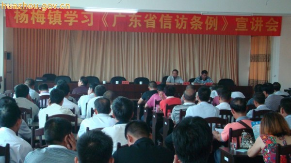 6月13日上午,由市组织的《广东省信访条例》宣讲会在杨梅镇召开。市信访局副局长黄哲到场授课。该镇全体镇、村干部共140多人参加了会议。会议由该镇党委副书记蔡国祥主持。