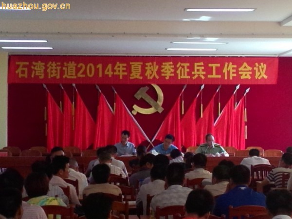 7月21日下午,石湾街道召开了2014年夏秋季征兵工作会议。该街道办全体干部、相关机关站所主职及各村(居)书记(主任)、民兵营长参加了会议。会议由该街道办主任黄亚春同志主持。