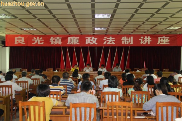 根据《化州市纪委关于2014年我市开展纪律教育学习月活动的实施意见》精神,9月23日上午,良光镇在该镇政府大楼五楼会议室举行以“严明组织纪律,锻造优良作风”为主题的“廉政法制教育”讲座。市司法局副局长赖文雄、市纪委宣教室主任黄胜文、市司法局宣教股干部黄永勇等出席了活动,该镇全体镇干部,各村(居)支部书记、主任,各机关站所主要负责人约200人参加了此次讲座。会议由该镇党委副书记吴智秀主持。