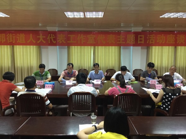 本次主题日活动采用现场视察和座谈会形式开展,代表们分别到下郭青鸟教育城征拆现场及鉴江流域下郭多谷段现场视察征地拆迁工作情况和水污染整治情况。随后,在街道办三楼会议室召开座谈会,听取街道党委书记张振旺同志代表街道办的有关工作情况汇报,并对下郭街道重点项目征拆、水污染防治等工作提出相关意见及建议。