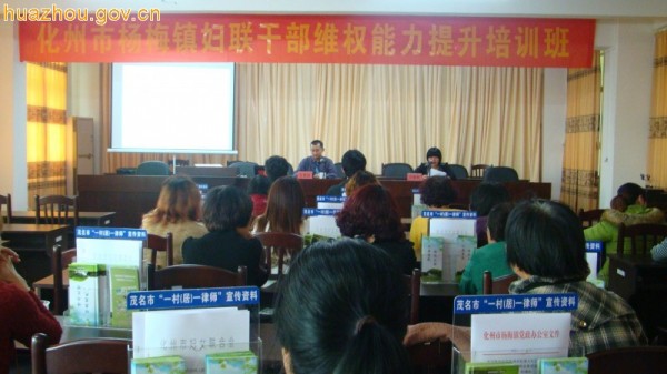 在培训班上,吕桂枝同志发表讲话,她指出,举办这次维权能力培训班对巩固和推进妇女在家庭和社会的地位,充分发挥妇女干部在推进社会主义新农村建设和构建和谐社会的作用具有十分重要的意义。希望各位姐妹同志在会后要继续认真学习,理解消化,并把所学到的知识传达到各机关单位、各村(居)委会的每一位妇女身上,充分结合镇开展的一村(居)一律师工作做好当前的妇女工作,为构建幸福和谐杨梅贡献自己的力量。