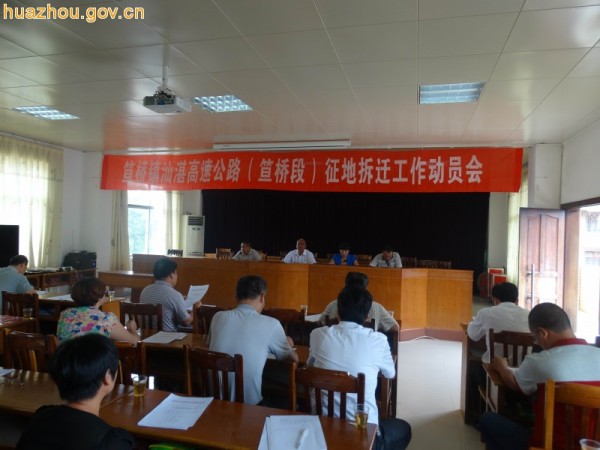 5月8日上午,笪桥镇在该镇政府三楼会议室召开汕湛高速公路(笪桥段)征地拆迁工作动员会。该镇全体镇干部职工,机关单位主职,村(居)委会书记、主任及高速公路沿线村全体村干部共130多人参加了会议。会议由该镇党委委员、副镇长周辉主持。