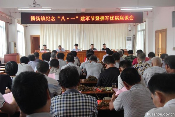 7月31日下午,播扬镇在镇政府五楼会议室召开纪念“八·一”建军节暨拥军优属座谈会。镇领导班子、退伍军人代表、现役军人家属代表等50多人参加。会议由镇人大席何仁静主持,镇委副书记、镇长王宝丹出席并作重要讲话。