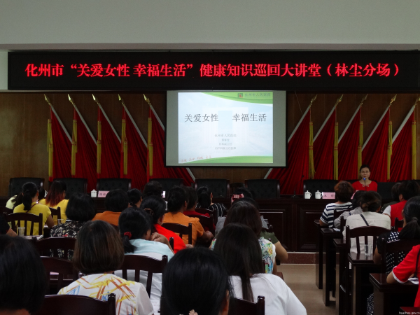 为贯彻落实党的十九大精神及习近平总书记提出的“没有全民健康,就没有全面小康”精神,进一步普及女性健康知识、科学育儿知识,满足广大妇女群众的健康需求,倡导健康生活方式、健康生活行为,7月5号,林尘镇妇联、林尘镇计生办、化州市人民医院联合在林尘镇六楼会议室举办了以“关爱女性 幸福生活”为主题的健康知识讲座。参加本次讲座的有镇村妇女干部、妇女群众共100多人。