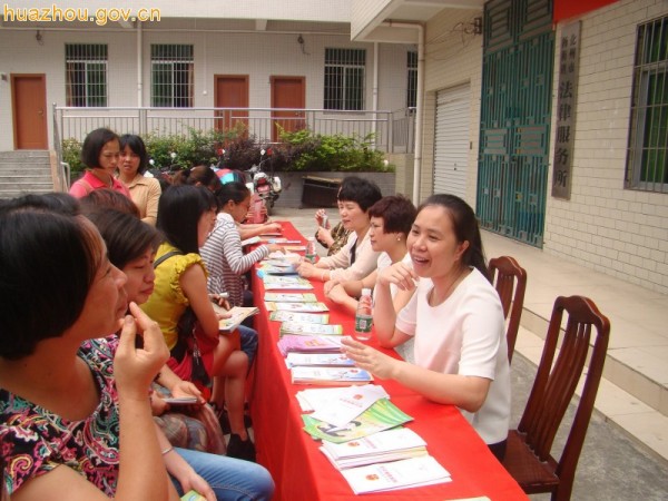 讲座结束后,在杨梅镇政府大院内举办了“创平安家庭,建和谐茂名”普法宣传活动。