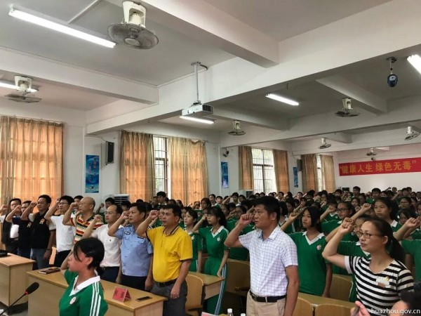 活动当天,参加人员观看了禁毒宣传视频、参观了禁毒宣传展板并集体进行禁毒宣誓,团茂名市委向杨梅中学赠送了青少年禁毒知识手册300册,禁毒志愿者与学生们开展了禁毒知识趣味活动。活动中,吴校副市长、李拔飞副书记分别作了讲话,要求广大师生要清楚认识毒品的危害,珍爱生命,拒绝毒品,远离毒品,要以实际行动积极参与和支持禁毒宣传、预防教育和防范工作,坚持与毒品违法犯罪作斗争。学生代表作了表态发言,表示将会主动加强学习有关禁毒的法律法规和拒毒、防毒知识,提高防毒、拒毒自我保护意识,做到“不让毒品进我家”,争当“禁毒小卫士”。