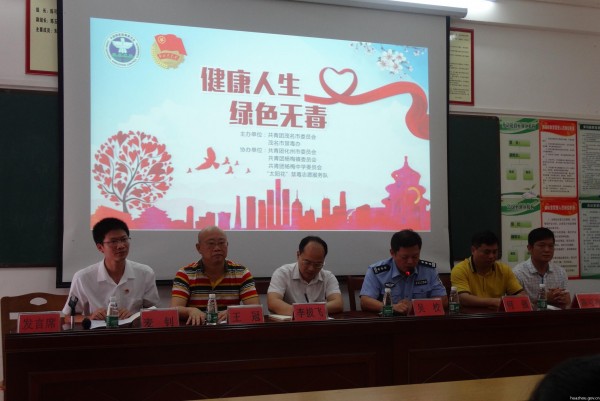 6月26日国际禁毒日,杨梅镇在杨梅中学开展以“健康人生、绿色无毒”为主题的禁毒宣传活动。团茂名市委副书记李拔飞,化州市副市长、禁毒委副主任吴校,茂名市禁毒委专员王冠,团化州市委书记麦钊,杨梅镇委副书记、镇长何强,镇委副书记李红等领导以及杨梅中学师生、茂名市禁毒志愿服务队志愿者、杨梅义工团志愿者、化州市禁毒办、化州团委、杨梅镇团委相关人员共计300多人参加了活动。