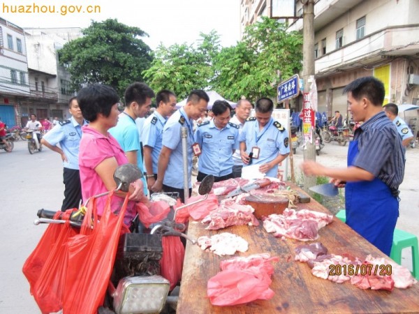 为了加强生猪市场规范管理,让广大消费者吃上放心肉,7月20日,丽岗镇食药监所联合市食药监局稽查大队、化州市食品公司、公安局、畜牧兽医、农业局等相关职能部门,对南盛街道辖区内市场猪肉销售点开展专项检查。