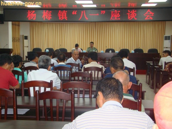 7月29日上午,杨梅镇在镇政府五楼会议室召开“八一”建军节座谈会,同庆建军佳节,共叙军民情谊。各村(居)委会民兵营长、退伍军人、烈属、现役军人家属代表约60人参加了座谈会。会议由该镇党委委员、武装部长李志宇主持。