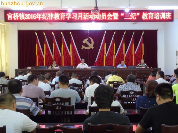 为学习贯彻落实省、市纪律教育月活动的有关精神,按照《中共化州市委办公室转发<市纪委关于2016年我市开展纪律教育学习月活动的实施意见>的通知》(化委办[2016]27号)文件要求,官桥镇结合“两学一做”学习教育活动,积极开展纪律教育学习月活动,并于8月8日上午在该镇五楼会议室召开了2016年纪律教育学习月活动动员会暨“三纪”教育培训班。会议由该镇镇长周亚海主持。
