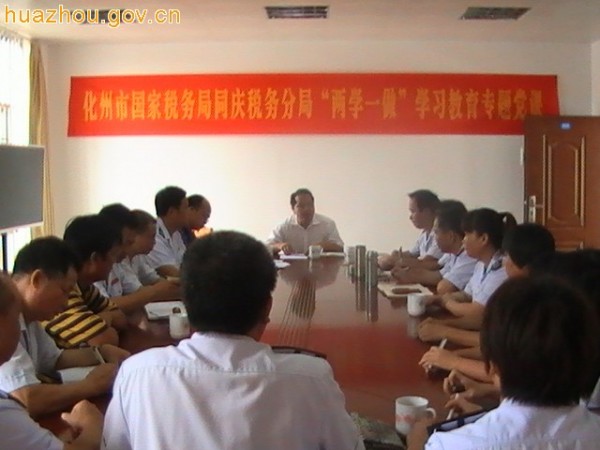 近日,化州市同庆国税分局“两学一做”学习教育党课辅导会议在分局二楼会议室召开,同庆国税分局全体党员参加,同庆镇镇长张武成出席会议并讲话。