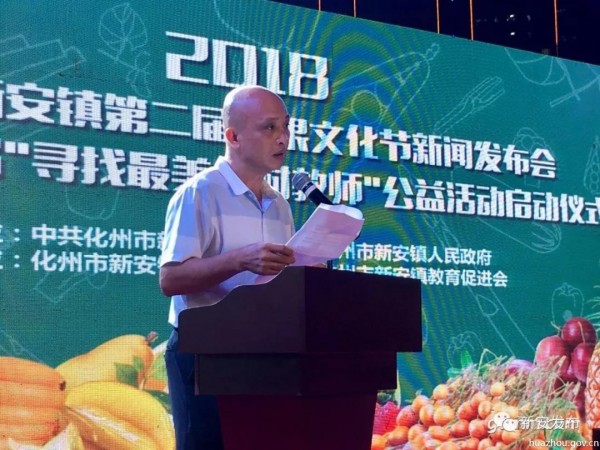 6月23日晚,2018化州市新安镇第二届水果文化节新闻发布会暨新安镇首届“寻找最美乡村教师”公益活动启动仪式在茂名市东汇城南广场举行。