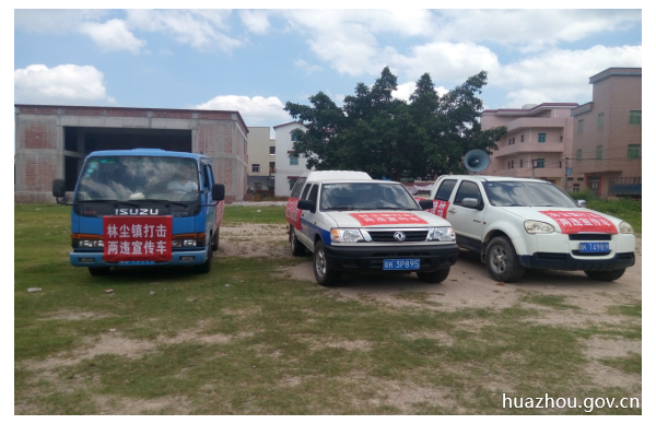 图为林尘镇打击两违宣传车下乡开展“两违”整治宣传
