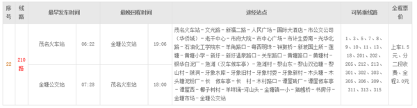 2月19日早上金塘去茂名的210公交车第一班几点钟出发?
