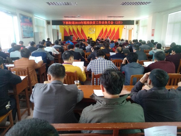 2月12日上午,下郭街道召开精准扶贫工作月会,街道全体干部职工,各村委会全体村干部、机关单位主职参加会议。会议由街道办主任陈雄杰同志主持。