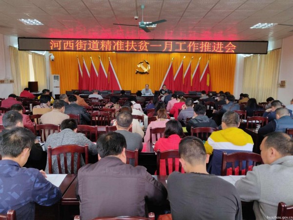 1月22日下午,河西街道在街道六楼会议室召开精准扶贫一月工作推进会。街道领导班子全体成员、街道驻村委会干部、驻各村委会“第一书记”及各村委会全体干部等100多人参加会议。会议由街道党委书记杨亚田主持。