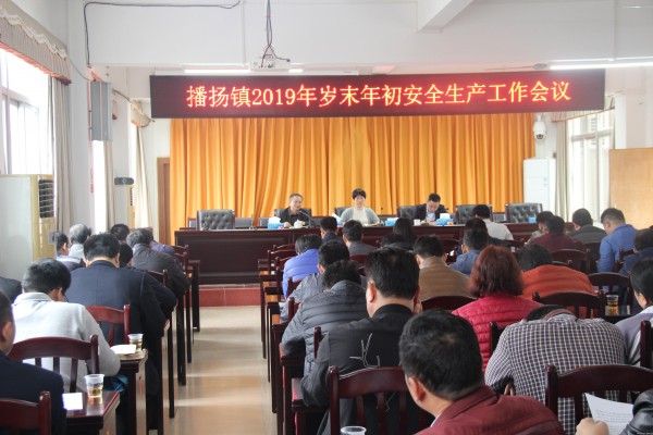 1月24日,播扬镇在镇政府五楼会议室召开工作会议,部署精准扶贫、岁末年初安全生产、食品安全、烟花爆竹打非、春节期间安保维稳等工作。全体镇干部、各村(社区)支部书记、机关单位负责人等100多人参加会议。会议由镇委书记王宝丹主持并作讲话。