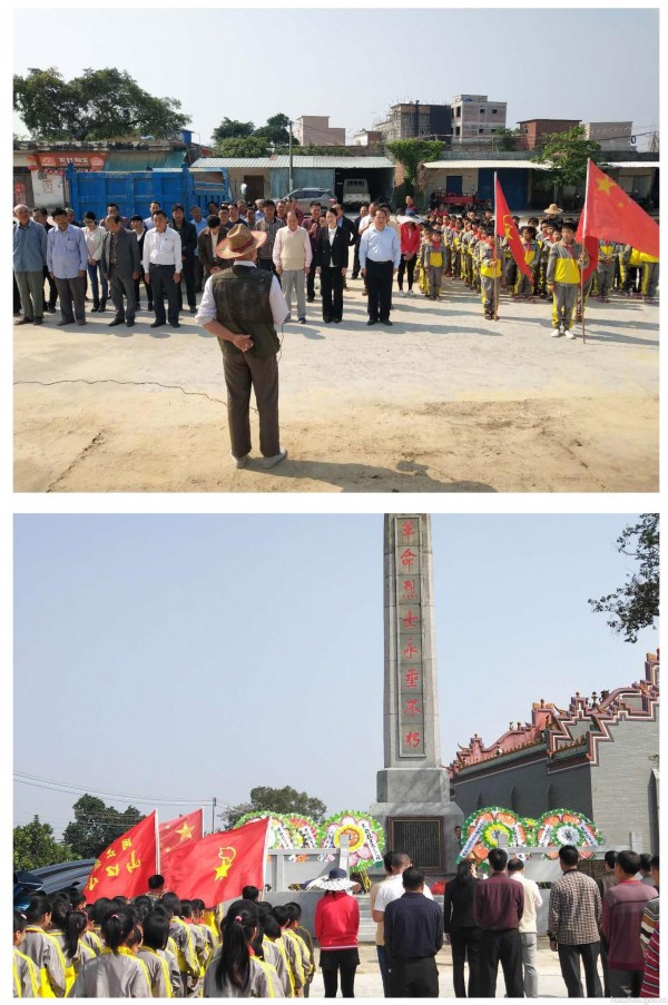 参与祭扫烈士活动的还有山口村“两委”干部,山口村支部全体党员,山口小学全体师生。祭扫仪式庄严肃穆,所有人员在雄伟庄严的革命烈士纪念碑前列队肃立,在雄壮激越的国歌声中,全体人员向烈士致敬、鞠躬,寄托哀思,并敬献了花圈,深切缅怀革命先烈。老游击战士联谊会副会长李一雄同志向大家讲述了在国难当头、民族危机深重时刻全力投身抗日救亡运动后来惨遭敌人杀害的战士陈可楷不屈不挠、英勇顽强的革命事迹,寄语大家不要忘记今天的和平环境和幸福生活是革命先烈们抛头颅洒热血,用宝贵的生命换来的,同时殷切勉励同学们要从小立志,树立远大抱负,勤奋学习,掌握本领,为建设繁荣富强的祖国、为实现中华民族的伟大复兴贡献力量。