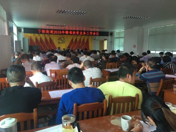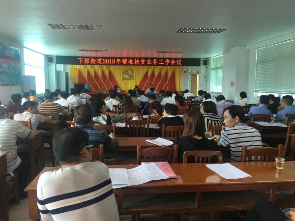 2018年3月28日下午,下郭街道召开2018年精准扶贫业务工作会议,街道全体干部、职工,各村(社区)支部书记(主任)、机关单位负责人及驻村干部共100多人参加会议。会议由街道办主任陈雄杰同志主持。