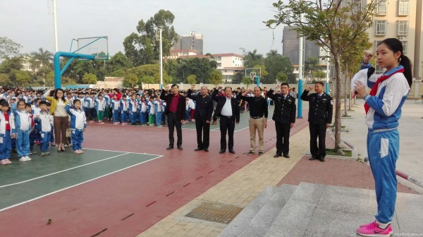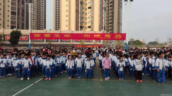 为了使师生充分认识毒品的危害,增强自我保护意识,营造稳定和谐的校园环境,3月12日上午,河西街道在化州市第一小学校园举行禁毒宣誓大会。河西街道党委书记杨亚田;党委副书记庄志雄;党委委员、河西派出所所长赵雄光;北岸派出所所长庞世贞及化一小全体师生和教职员工参加会议。 会上,杨亚田同志作重要讲话。希望师生们坚决与毒魔作斗争,珍爱生命、拒绝毒品,保证不吸毒、不贩毒、不制毒、不种毒,积极检举吸毒贩毒行为、自觉抵御毒品的侵蚀、积极投身于禁毒斗争行列,并强调以下三点意见:一要提高禁毒意识;二要树立主人翁意识;三要迅速行动起来,当好禁毒宣传员、监督员。 最后,在学生代表带领下,与会全体人员宣读禁毒誓词。