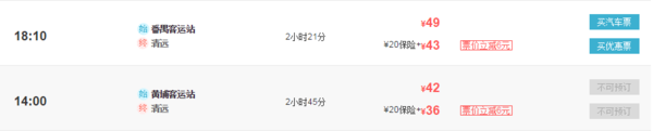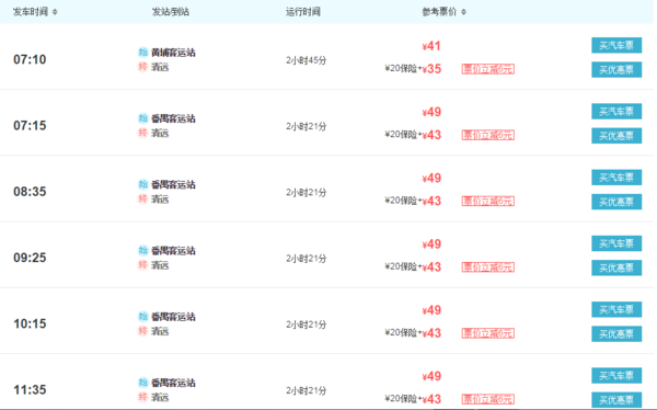 截止2016年9月,广州至清远汽车时刻表如下: