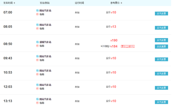 截止2016年9月,清远至杨梅镇汽车时刻表如下: