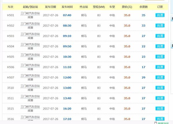 闻喜县东镇镇到三门峡的汽车票查