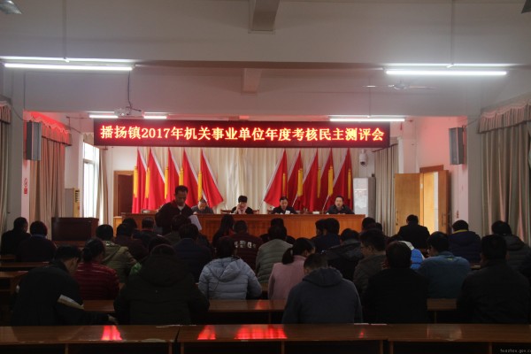1月8日下午,播扬镇在镇政府五楼会议室召开2017年机关事业单位年度考核民主测评会,全体镇干部共60多人参加会议。会议由镇委副书记吴俊杰主持。