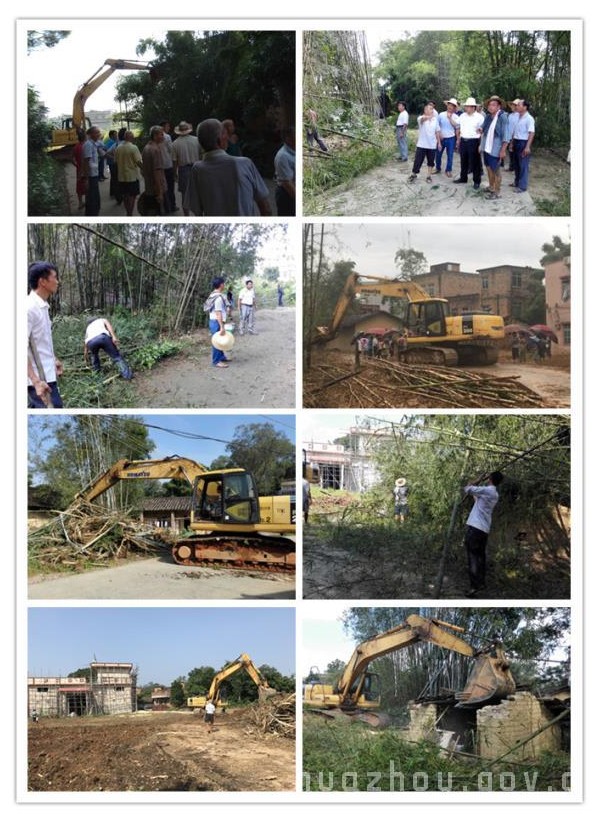 三、工作扎实推进,干部带头表率。发动全民参与,迅速开展道路两旁杂草竹木大清除,疏通沟渠,清理死角。村委组织钩机、推土机等设备对村中部分危旧房、废弃猪牛栏及露天厕所、茅房进行了拆除。行动中,党员干部起到了示范带头作用,驻村工作队和村委干部每天到现场指导和并参与清理,带头表率,感动了众多村民。