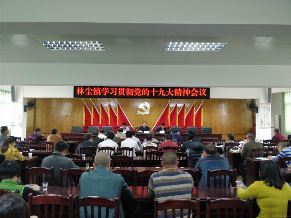 11月27日下午,林尘镇在六楼会议室召开学习贯彻党的十九大精神会议。该镇全体镇干部、村(居)委会书记(主任)约90多人参加了会议。会议由镇党委书记劳业锋同志主持。