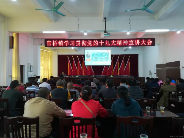 党的十九大是在全面建成小康社会决胜阶段、中国特色社会主义进入新时代的关键时期召开的一次十分重要的大会。学习好、宣讲好、贯彻好党的十九大精神,是当前和今后一个时期首要政治任务。为贯彻好党的十九大精神,12月11日,官桥镇在五楼会议室召开了学习贯彻党的十九大精神宣讲会,邀请了化州市委党校副校长陈伟武同志作专题宣讲,全体镇干部职工90多人参会。会议由镇党委书记陈英超主持。