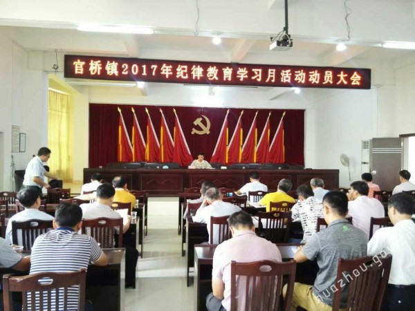 8月15日,官桥镇在镇五楼会议室召开2017年纪律教育学习月活动动员会,会议紧紧围绕今年纪律教育学习月活动“讲政治、强党性、严纪律、守规矩”的主题,进一步严明党的纪律规矩,以纪律教育为契机,全面推进镇反腐倡廉建设,营造风清气正的良好政治生态环境,促进镇经济社会健康快速发展。全体镇干部职工、各村(居)支部书记、机关单位主职共150多人参加会议。