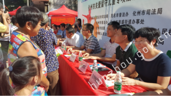 化州市关爱留守儿童专项法治宣传活动在南盛街道隆重举行。为增强留守儿童遵纪守法意识和安全意识,丰富他们暑期生活,7月26日上午,茂名市、化州市两级普法办、司法局,南盛街道办事处、南盛街道妇联组织开展“关爱留守儿童专项法治宣传”活动,茂名市司法局局长朱向贤、化州市委副书记周太强、南盛街道党委书记李智昌和市司法局、普法办、妇联、团市委、检察院、法院、公安局、教育局等单位部门领导出席了活动。