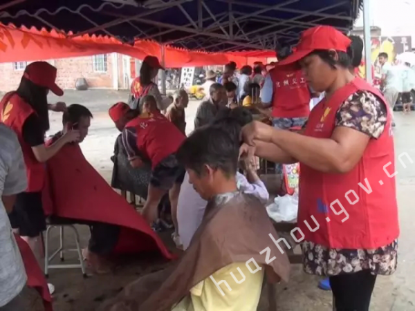 市义工联南盛分会会长 黎波:今天我们南盛义工分会来到乐塘(村)搞一个爱心活动,帮他们理发、义诊,包括为60岁以上的老人送面条。